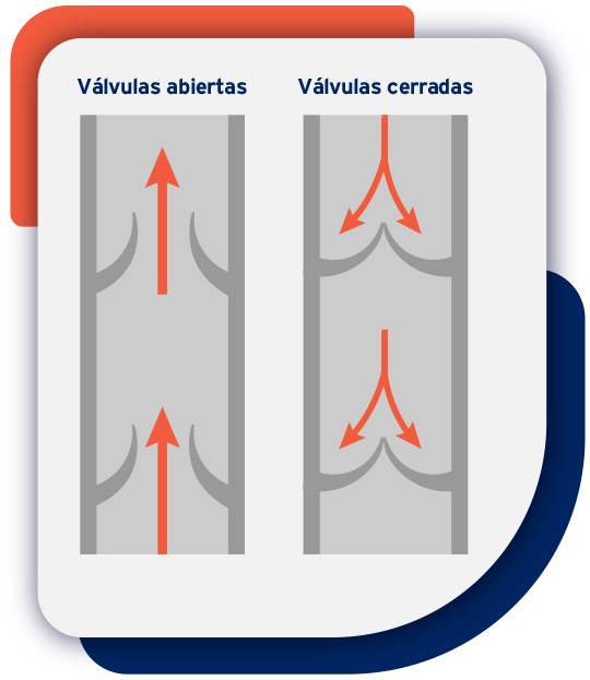 Las várices son una afección común provocada por paredes y válvulas venosas débiles o dañadas. Las venas tienen válvulas unidireccionales (solo van en una dirección) en su interior que se abren y cierran para que la sangre siga fluyendo hacia el corazón. Las válvulas y paredes venosas débiles o dañadas pueden hacer que la sangre se acumule o incluso que fluya en dirección contraria. Esto se llama reflujo. Las venas pueden aumentar de tamaño y deformarse, lo que provoca la aparición de várices. Aprende más acerca de cómo funciona el corazón y cómo fluye la sangre desde y hacia el corazón.2,3